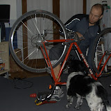 Just the other day I found myself to be quite useful in helping dadio fix his bike. Little did he know that I am the caped bicycle crusader. At first I decided just to watch but when I realized he had no idea what he was doing I decided to take action. All the bike needed was a little slobber on the chains as lubricant, a few kisses on the brake handles to fix those shaky brakes and a few sniffy nudges. Its too bad he doesn't know a thing about fixing bikes! Mom took some pictures (for some odd reason she was amused by my intimate knowledge of bicycle repair work-seriously people, thats just knowledge gained in vitro!!), Ill bug her to put them up.